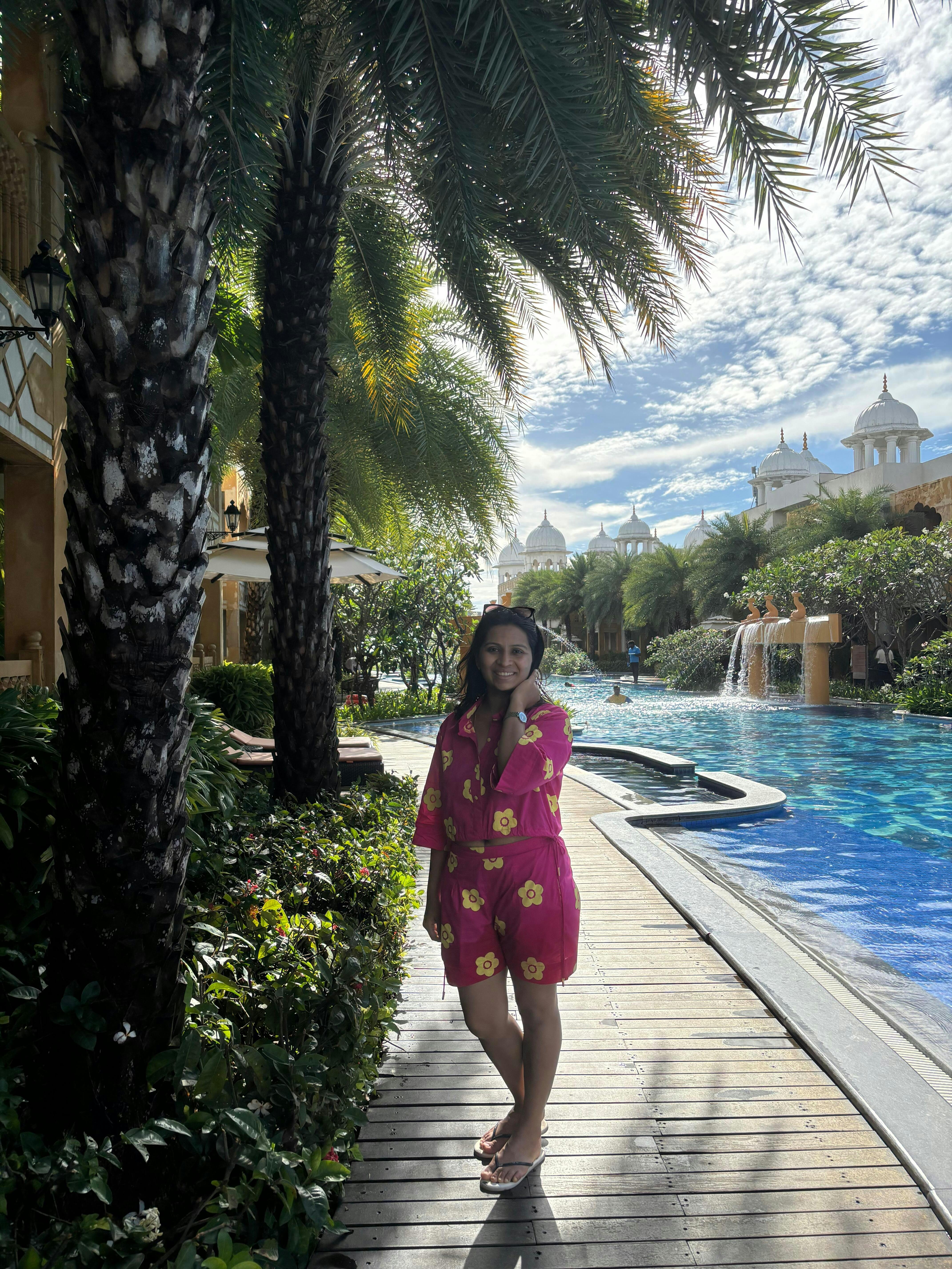 Our Poppy flower hand printed cotton top with side pull up details comes with printed matching shorts.
